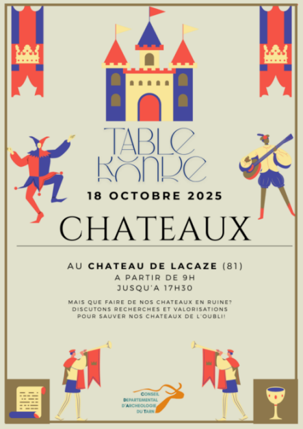 Dans le Tarn comme dans d'autres départements d'Occitanie, une belle diversité d'acteurs oeuvrent pour dévoiler au grand jour l'attrait de ces constructions. Cette table-ronde est une invitation â partager les expériences, les connaissances et les savoir-faire rassemblés au fils du temps par des passionnés : archéologues, chercheurs, architectes, médiateurs culturels, guides, bénévoles, et propriétaires. Chacun viendra exprimer sa vision du château et échanger sur l'intérêt d'une interaction entre recherche, conservation et valorisation pour mieux comprendre les enjeux que recouvrent ces édifices au sein d'un territoire.